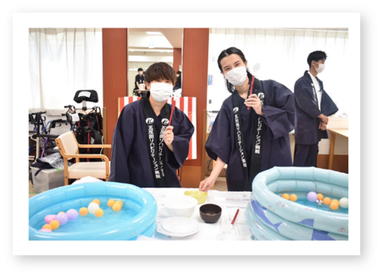 HOME お知らせ一覧 縁日を開催しました! 2025.10.03 病院からお知らせ 縁日を開催しました! 当病院内で患者様向けの縁日イベントを開催しました。 射的やピンポン玉すくい・くじ引きなどの催しに、多くの患者様が積極的にご参加くださいました。また、リハビリスタッフが手作りのお神輿を担ぎ、病棟を練り歩きました。 懐かしくも楽しい催しをとおして、患者様・職員共に笑顔あふれるひとときを過ごすことができました。今後も、患者様向けの様々なイベントを企画してまいります。 総務課 お知らせ一覧へ 相談窓口 入院案内