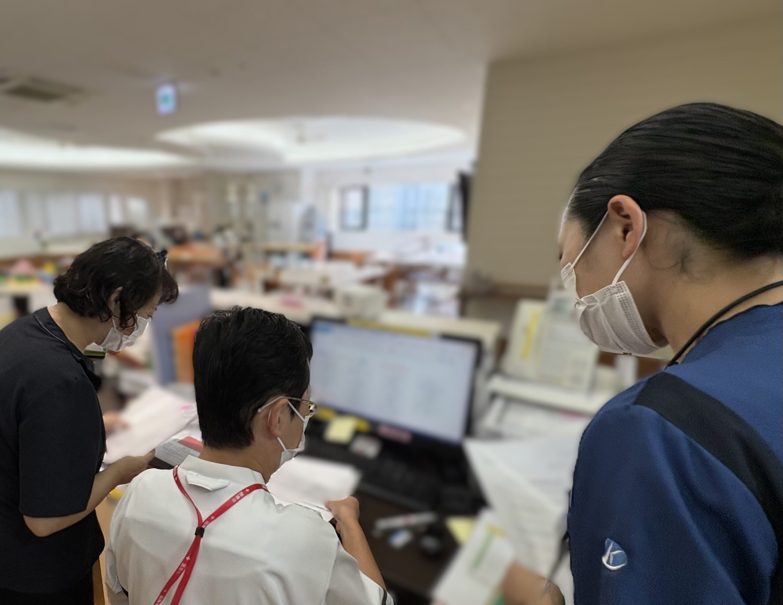 病棟では、医師・看護師・リハビリテーション科のスタッフなど、多職種がチームで協力し合い、患者様が安心して治療や療養に専念できる環境を支えています。未経験の方でも、他病棟のクラークや看護師長が丁寧にサポートしますので、安心してお仕事を始めていただけます。